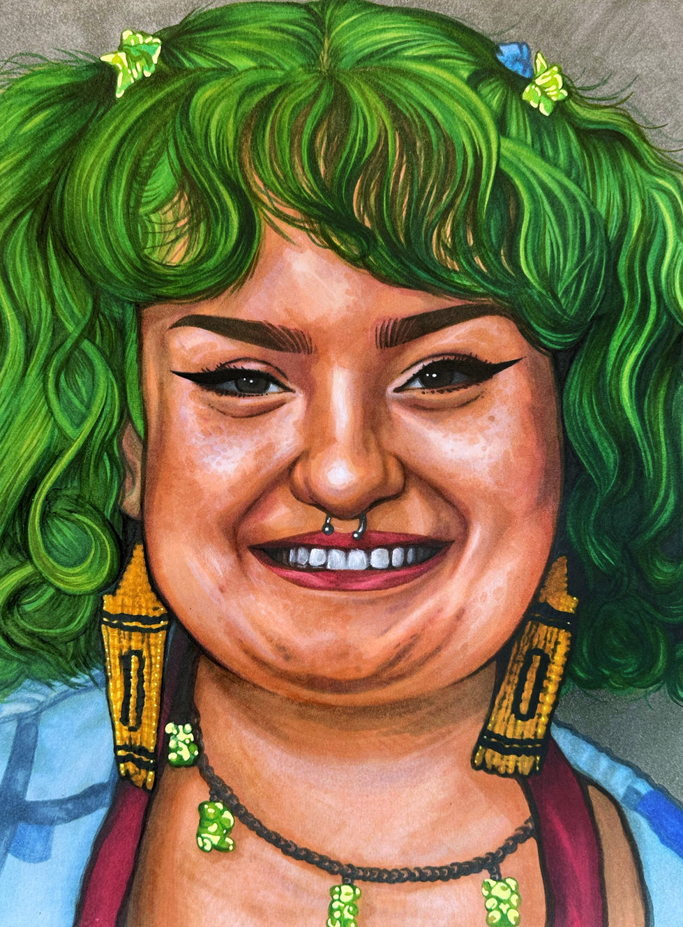 Alcohol marker, oil pastel, paint marker, and gel pen portrait illustration